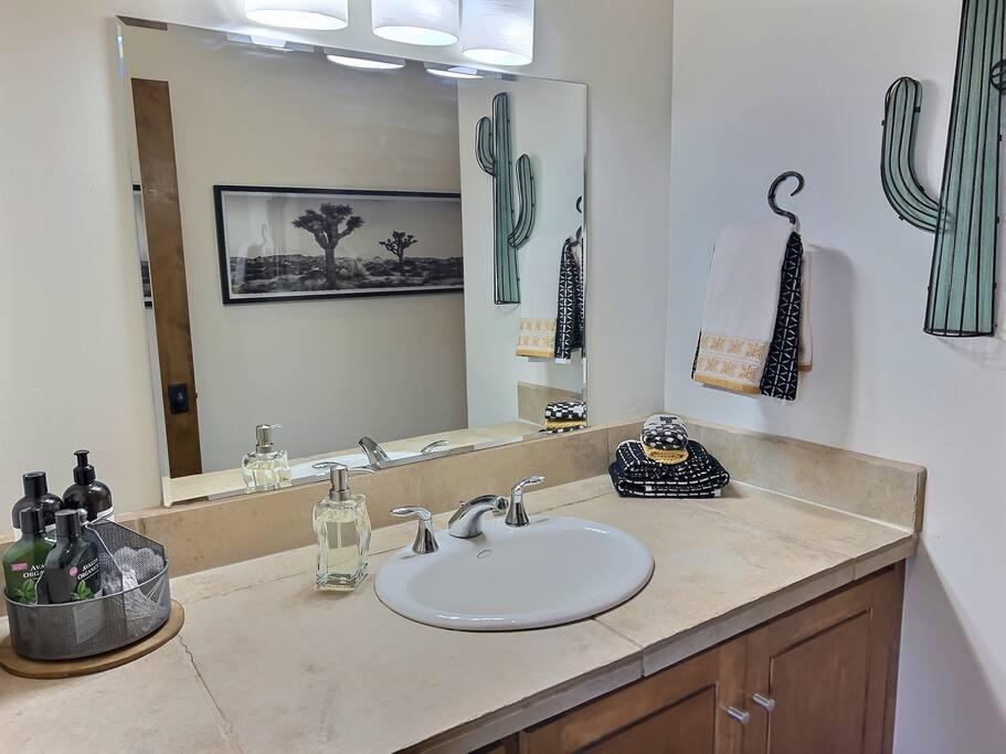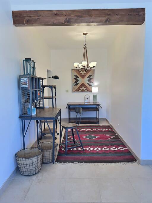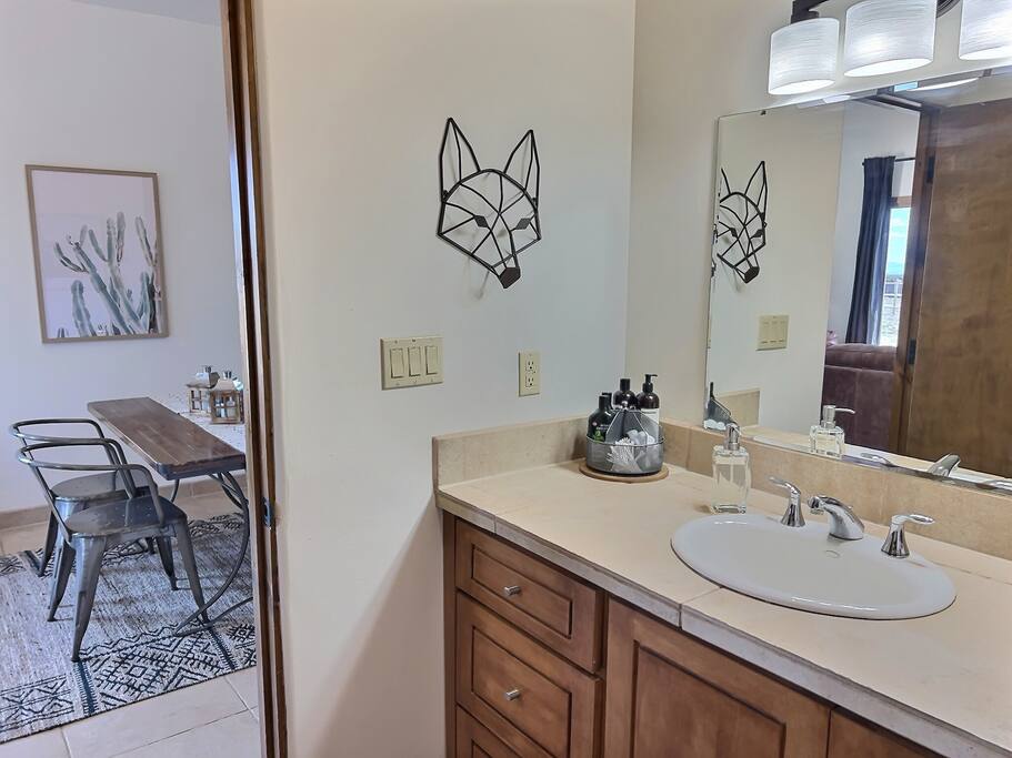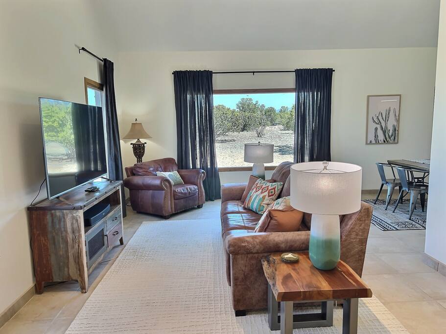 Coyote Castia is one level, with over 1,200 square feet The casita features high ceilings, tile floors, natural fiber rugs, and abundant amenities.