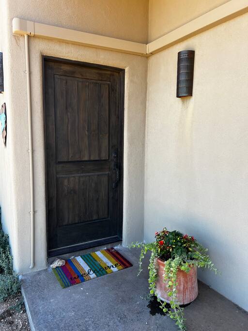 Vacation at Rancho del Viento. Experience its dark skies for stargazing, abundant wildlife, private arroyo, and peaceful spaces. The Rancho sits on the edge of the Galisteo Basin, and the center of Santa Fe Plaza is an easy 15 mile drive. Coyote Casita is a perfect balance of Santa Fe city access and the wide open lands of New Mexico's outdoors. Stargaze or sunbathe in the casita's lovely outdoor living spaces, enjoy your close proximity to our arroyo from which shy deer and elusive coyotes might emerge, or slip out the back gate of the Rancho onto over 4,000 acres of the Galisteo Basin for walking, hiking & cycling.